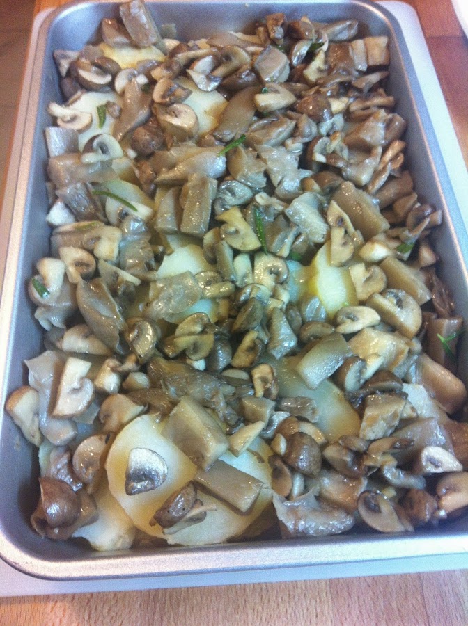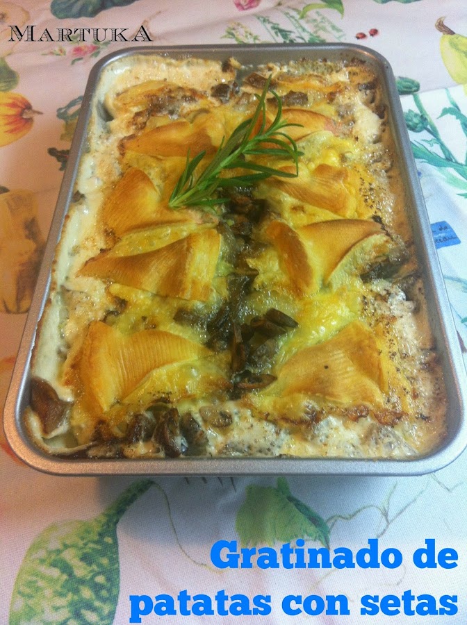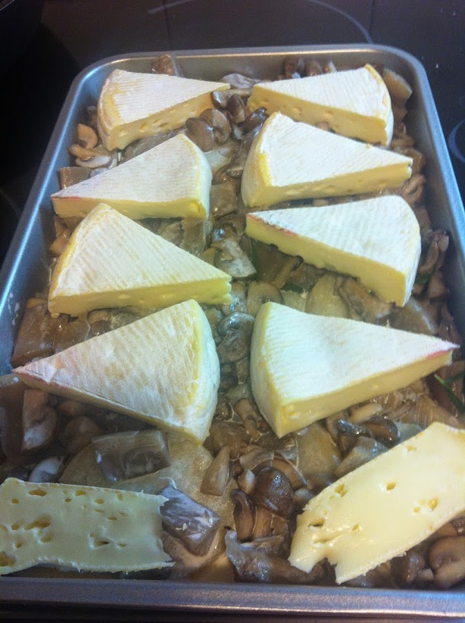 Ya he incluído recetas similares a ésta. Realmente es una Tartiflette tuneada a la que en lugar de la cebolla y el bacon como en la genuina que publiqué hace poco (pincha aquí), lleva champiñones y setas con un toque de romero.Si no encontráis el queso Reblochon característico de la Tartiflette, podéis sustituirlo por cualquiera de vuestro gusto. De hecho, tengo otras dos recetas de tartiflette un poco diferentes, pues llevan masa quebrada, con otros quesos: