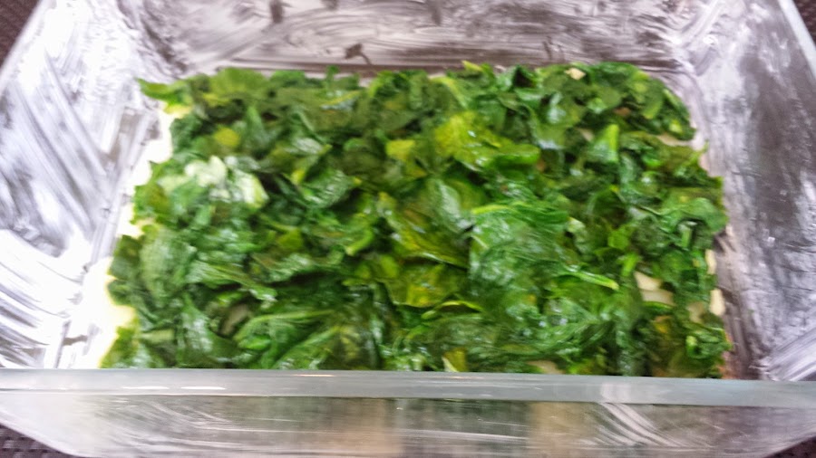 Encima, ponemos una de espinacas. Y seguimos alternando hasta agotar los ingredientes.