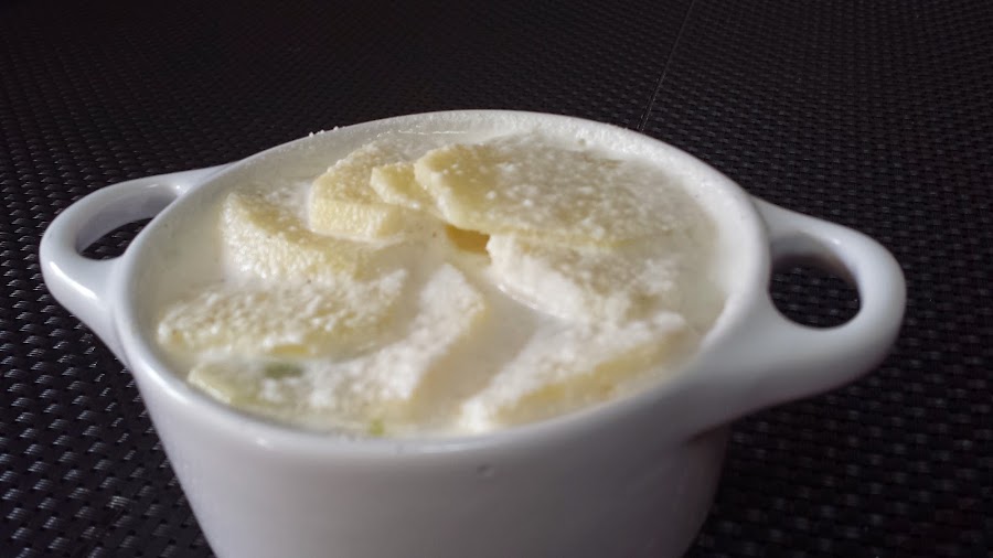 Pelamos las patatas y las cortamos en láminas muy finas.
