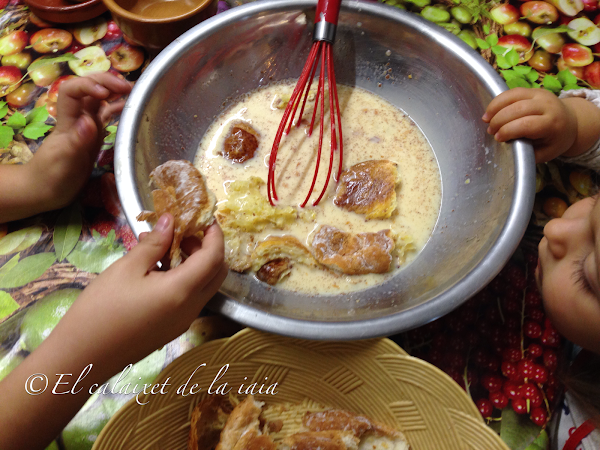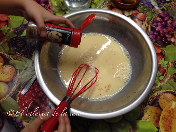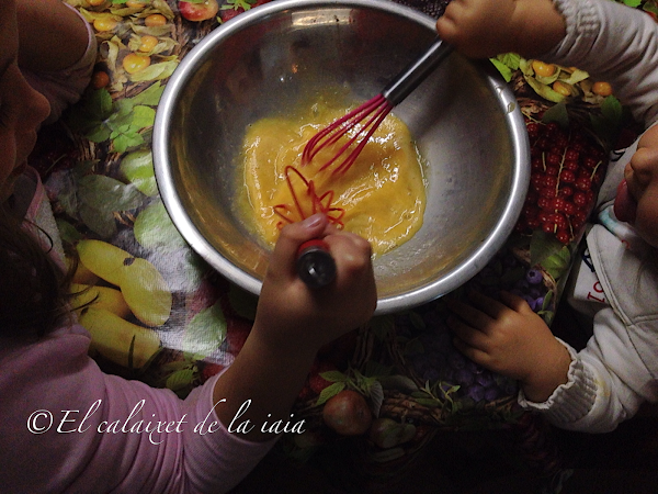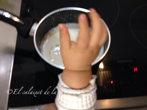 Ésta Greixonera es la mejor que he probado en mi vida, ya que no solo he contado con la ayuda de mi nieta mayor, si no que la pequeñita que aún no tiene los dos años, ya ha puesto sus manitas en mi cocina y el estreno ha sido precisamente con ésta receta, (con el fuego apagado lejos del horno y el caramelo caliente claro), así que comprenderéis que sepa a gloria bendita.