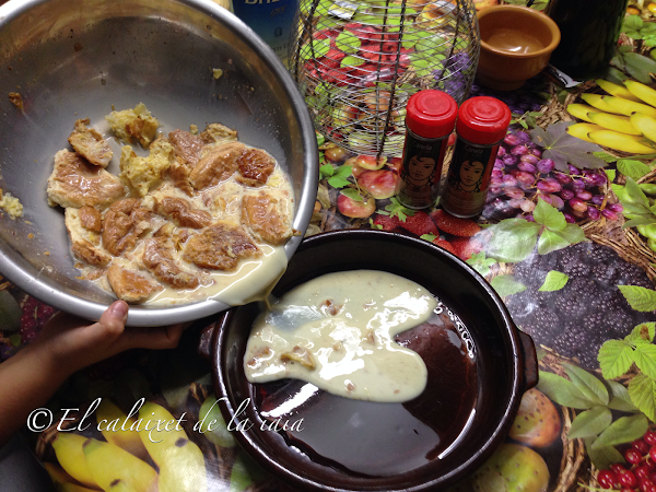 aquí en el corte podéis ver la ensaimada empapada, que hace una especie de puding perfumado con canela , muy jugoso y de sabor exquisito, que gana mucho con el reposo y está mas rica a los dos días de hecha