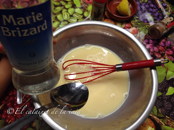 o en su lugar de anís dulce, aunque podéis prescindir del licor.Lo ideal es el licor de hierbas ibicenco pero si no tenéis, una cucharada de anís le dará un sabor parecido, aunque si lo van a comer niños o no os gusta el licor, podéis prescindir del mismo.