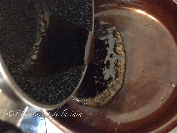 cuando tengamos el caramelo, lo volcaremos a la greixonera, previamente untada con un poco de mantequilla