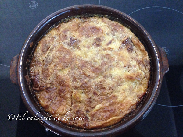 si no van a probar la greixonera los niños, es el momento de incorporar una cucharada de hierbas ibicencas o en su lugar de anís dulce