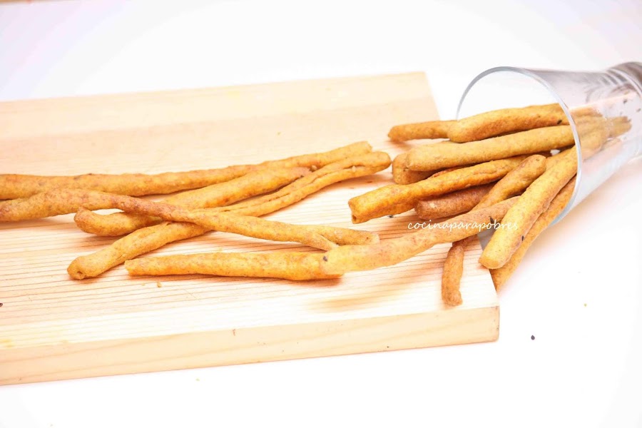 Con ayuda de un rodillo estiramos la masa, debemos obtener un rectángulo de aproximadamente 5mm de grosor. Cortamos tiras de 2cm aprox., las enrollamos sobre si mismas y las colocamos sobre la bandeja del horno previamente forrada con papel de hornear.