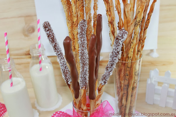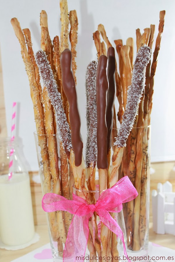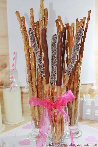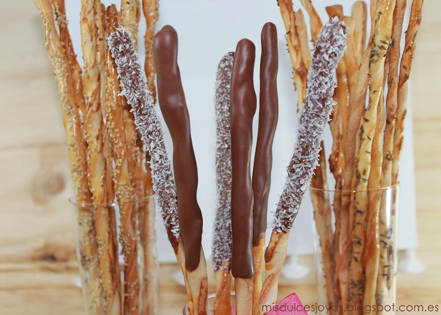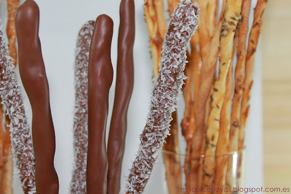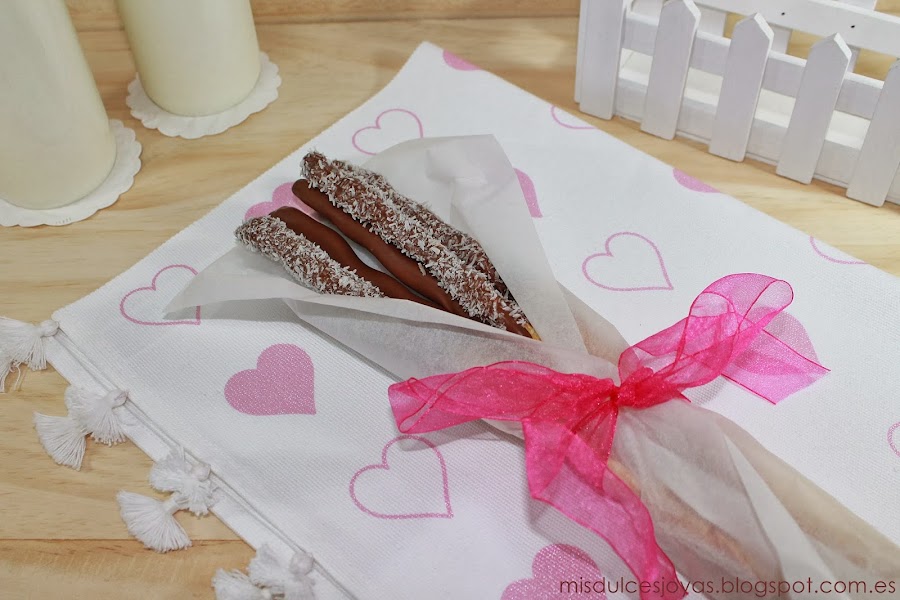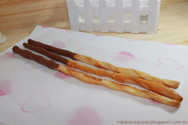 *** Para bañarlos con el chocolate os recomiendo que vertáis el chocolate fundido en un vaso de tubo, así teniendo en cuenta su tamaño (30 cm de largo) os será más fácil de bañarlos.