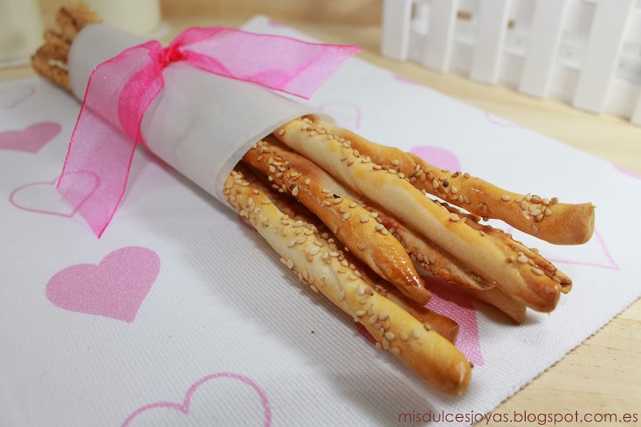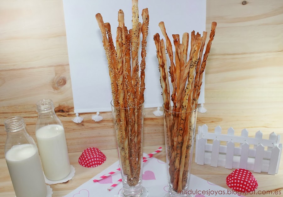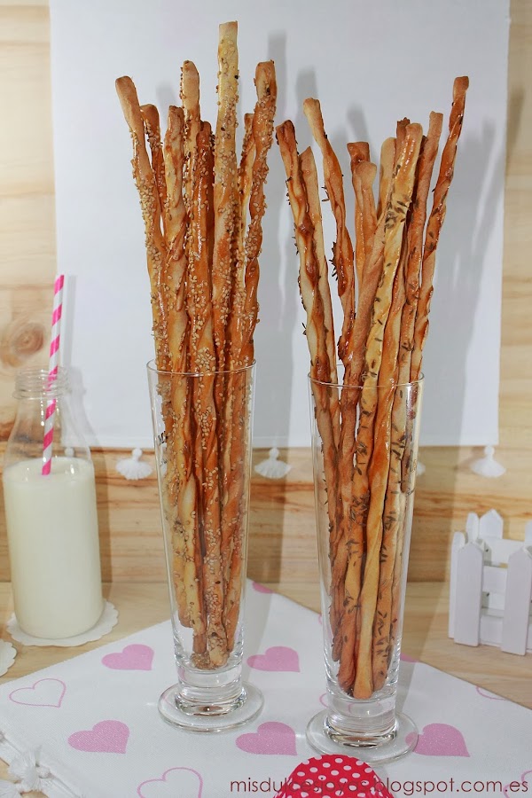 Ya que iba a ser la primera vez que participaba en los retos de "Qué rico mamá" (y para nada quería perdérmelo), al ver la propuesta de este mes lo primero que se me vino en la cabeza era preparar estos grisines. Realmente se trata de unos palillos de pan, servidos como aperitivo o un snack que aunque se conoce más como salado perfectamente se puede convertir en un snack dulce, ¿o no?