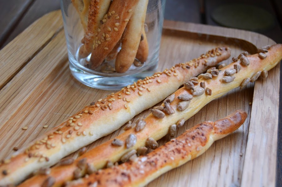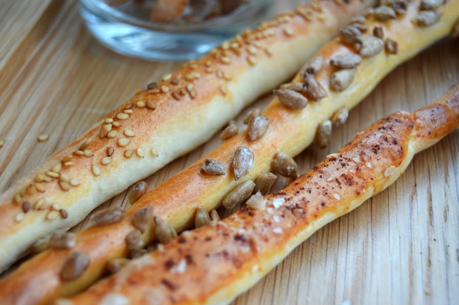 Viajamos a Italia, en concreto al Piamonte,a Turín, y de la mano de los grissinis, esos palitos de pan que los Italianos acompañan con el antipasto, precisamente para picotear y evitar saturarnos de pan antes de la comida. Una receta sencilla, rápida y que da mucho juego, a base de harina, agua, aceite, sal, levadura y lo que queráis añadir, porque podréis tutearlos con las semillas, hierbas o ingredientes que mas os apetezcan. El origen de estos palitos de pan se cree que se remonta a 1679, cuando debido a la delicada salud del Rey Vittorio Amadero II, que no podía digerir la parte blanda del pan, el panadero de la Corte Antonio Brunero, bajo las indicaciones médico Theobald Pecchio inventó este alimento. Estos palitos no solo resultan mas digestivos, sino que además se mantienen en buen estado mas tiempo. Por supuesto el éxito fue absoluto en poco tiempo. Y ojo que entre los fans de estos bastoncillos nos encontramos al mismísimo Napoleón Bonaparte que llegó a crear una linea de autobús Turín-París, especialmente dedicada al trasportes de estos bastoncillos que denominó "petitts bâtons de Turin".