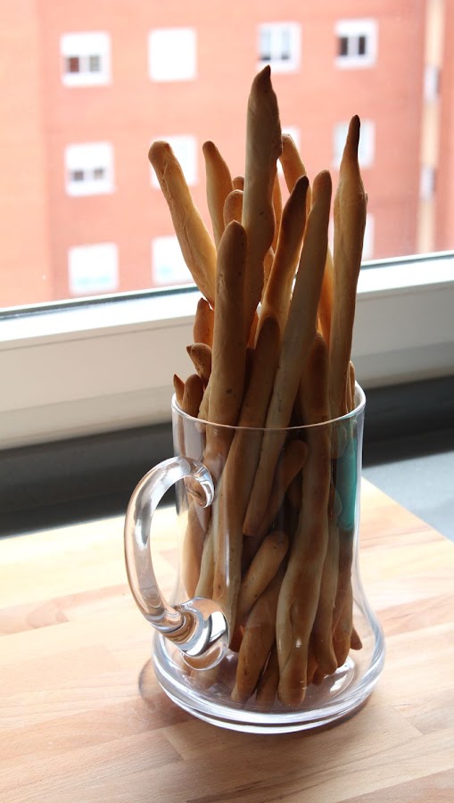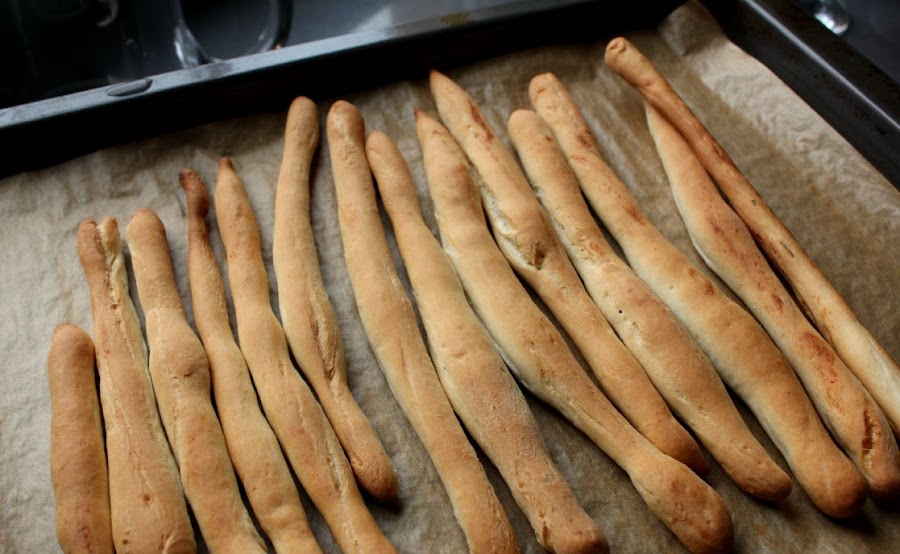 Disponemos los grissini en una bandeja del horno sobre papel vegetal. Cubrimos con un paño húmedo y dejamos reposar otros 30 minutos.