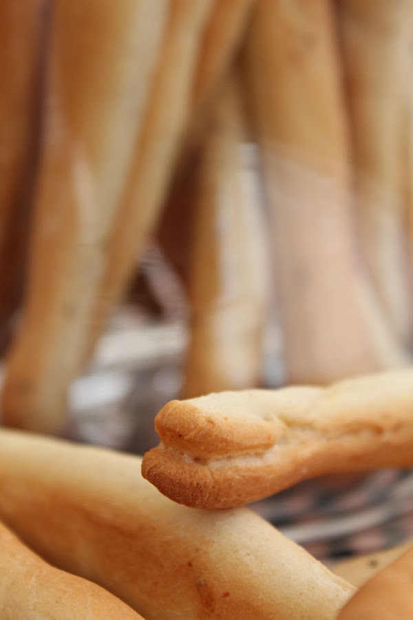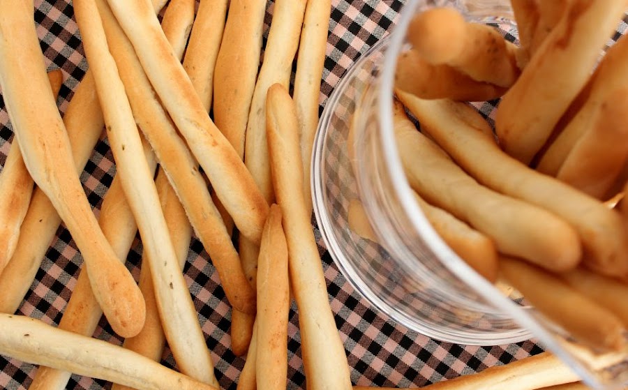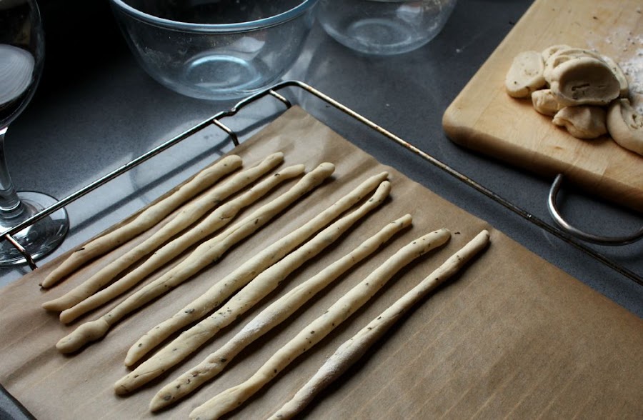 Divide la masa en tantas partes como tipos de grissini quieras hacer.