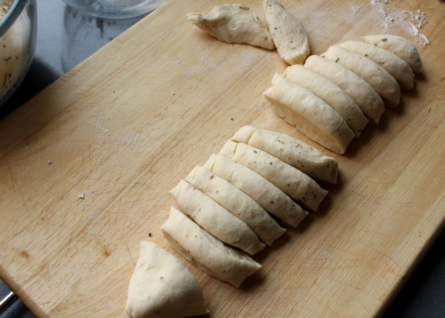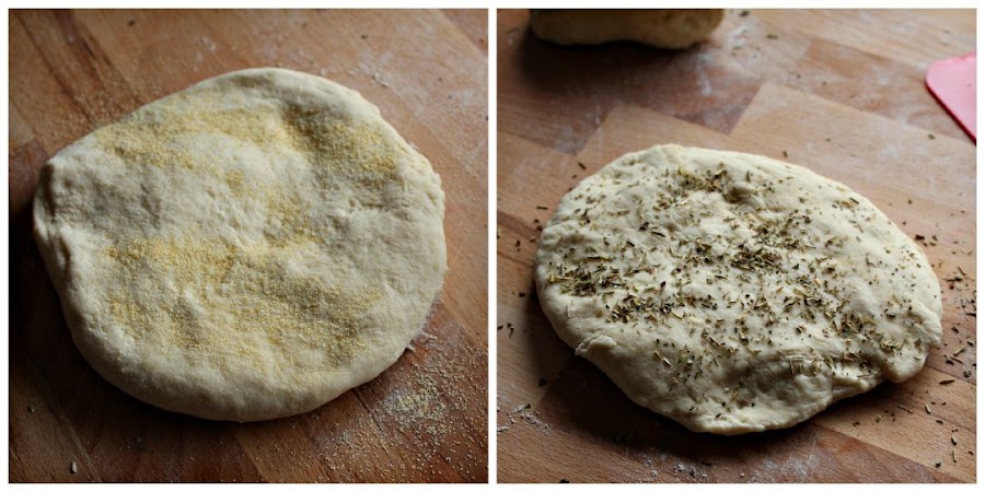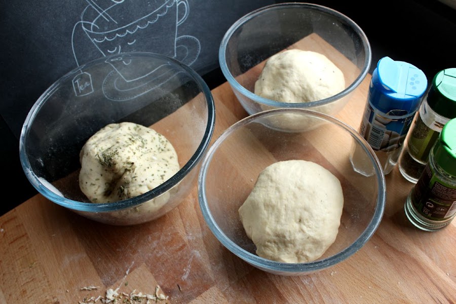 Esparce por encima de cada parte la hierba o el condimento que te apetezca. Mezcla y haz una bola. Deja reposar las masas cubiertas con un paño de cocina a temperatura ambiente, al menos 1 hora.