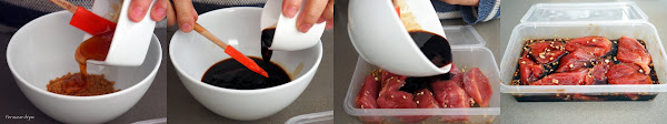Verter sobre la carne y remover ésta para que llegue a todas partes. Tapar el recipiente y dejar marinar en la nevera durante al menos 24 horas.