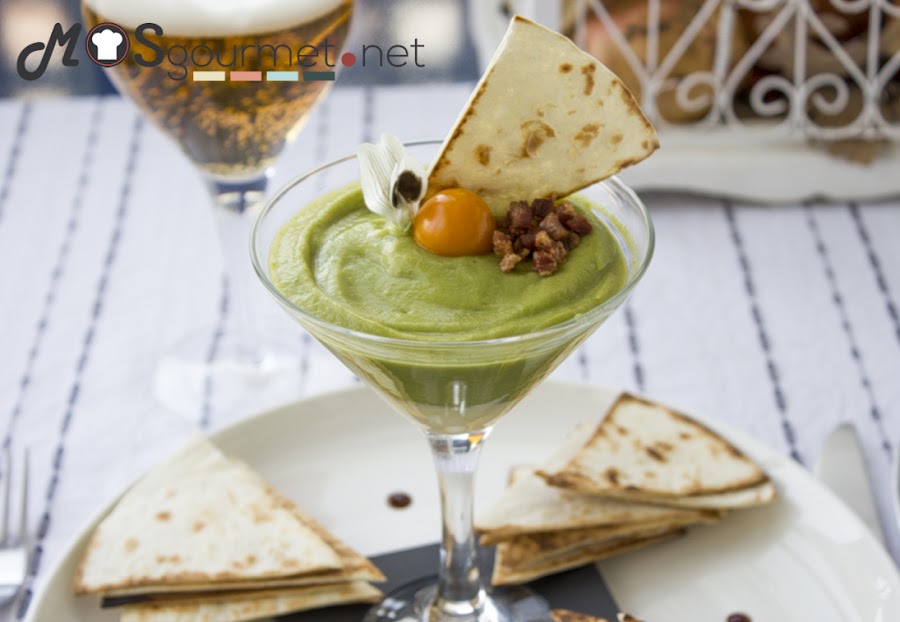 COMO SE HACE Lo primero que vamos hacer es el guacamole. Para ello pelamos los aguacates, le quitamos el hueso y lo cortamos en trozos. Troceamos la cebolla, la guindilla, el ajo, las hojas de cilantro y lo agregamos todo a un recipiente junto unas gotas de limón y un poco de sal. Para que la salsa nos quede con textura cremosa y uniforme he utilizado una batidora, pero si queréis que quede como un puré espeso, realizarlo con un mortero al estilo tradicional.