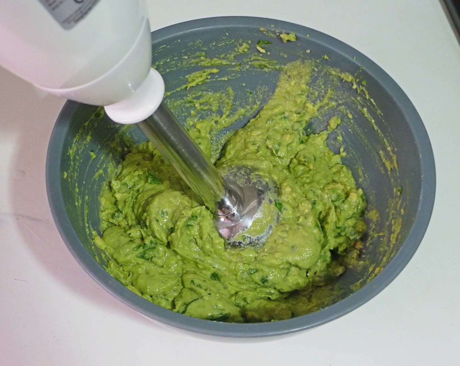 - Batimos bien hasta obtener la consistencia deseada. No es necesario batir. A mucha gente le gusta que queden trozos más grandes. A mí si es más de picoteo como cuando preparo el guacamole con granada me gusta más no batirlo, pero si hago esta receta básica, sobre todo pensando en utilizarlo en wraps o sobre pan, me gusta más batirlo y obtener una consistencia bien cremosa. Eso a vuestro gusto.