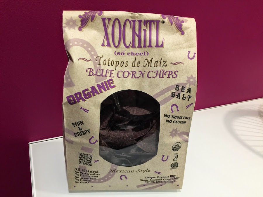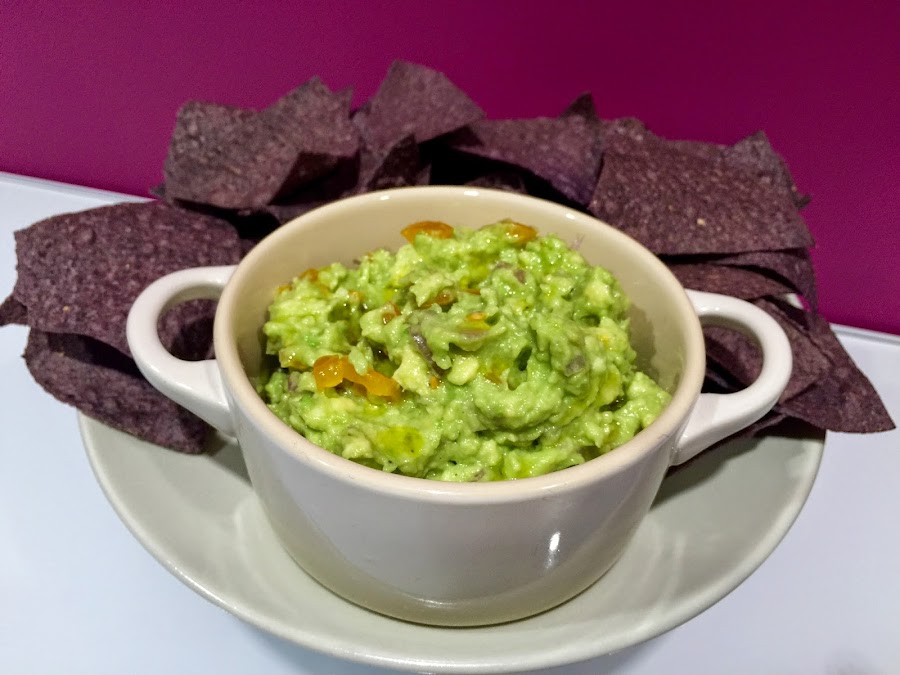 7. Servimos acompañados de unos buenos nachos. Yo siempre uso de la marca Xochitll, que están riquísimos. En este caso los de patata lila al punto de sal.