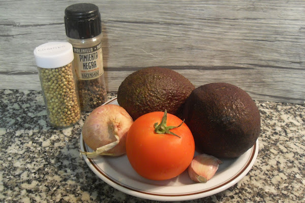 Abrir los aguacates por la mitad a lo largo, con una cucharadita sacar la pulpa y añadir al mortero chafar un poco, también se puede chafar con un tenedor en un plato, según os vaya mejor. Añadir el zumo de lima o limón para que la crema no se oxide.