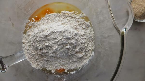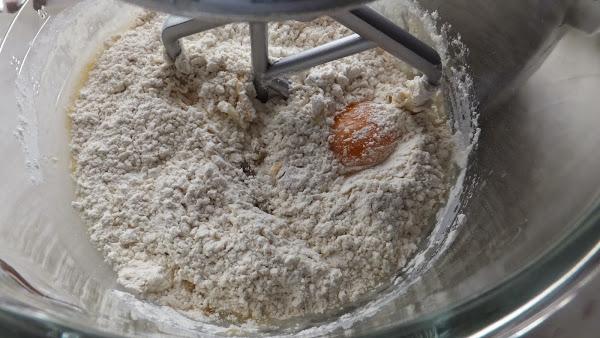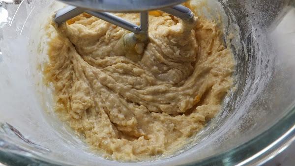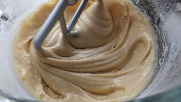3. Con una varilla de mano, varillas electricas o con la pala de amasado de la batidora mezcla bien todos los ingredientes primero a velocidad baja y después un minuto (aproximadamente) a velocidad alta, solo hasta que esté todo bien integrado y hayas obtenido una masa homogénea y sin grumos de harina. No es nada interesante batir más de lo necesario.