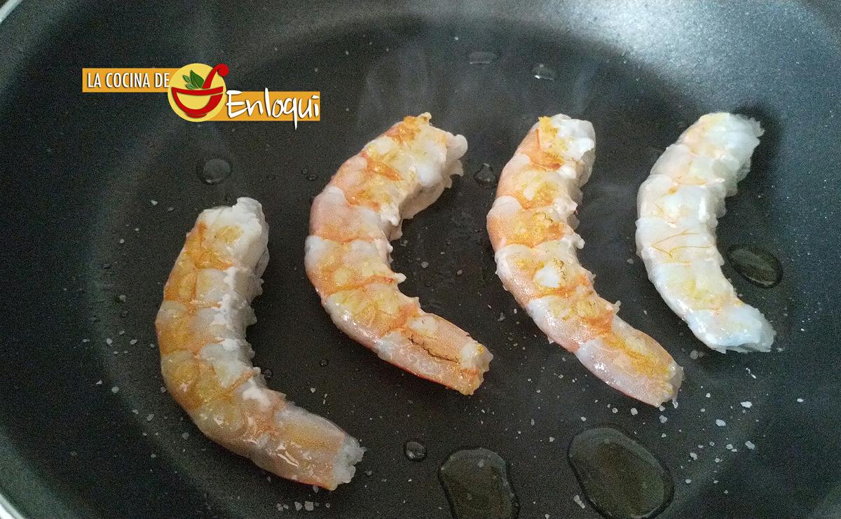 Lo primero de todo es cocer el arroz, lávalo primero y después pon un cazo con agua y sal al fuego, cuando rompa a hervir añade el arroz y cuece 20-25 minutos.En una sartén o en la plancha pon unas gotitas de aceite de oliva virgen extra y asa los langostinos pelados. Vuelta y vuelta, de forma que queden dorados por fuera y bien jugosos por dentro.