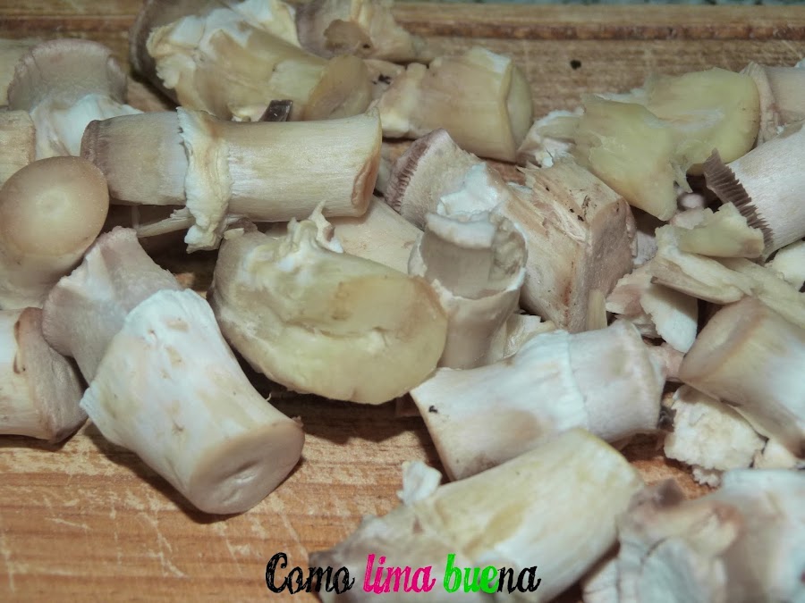 Luego procedemos a picar bien fino todos los tronquitos y saltearlos en un poco de aceite de oliva o manteca.