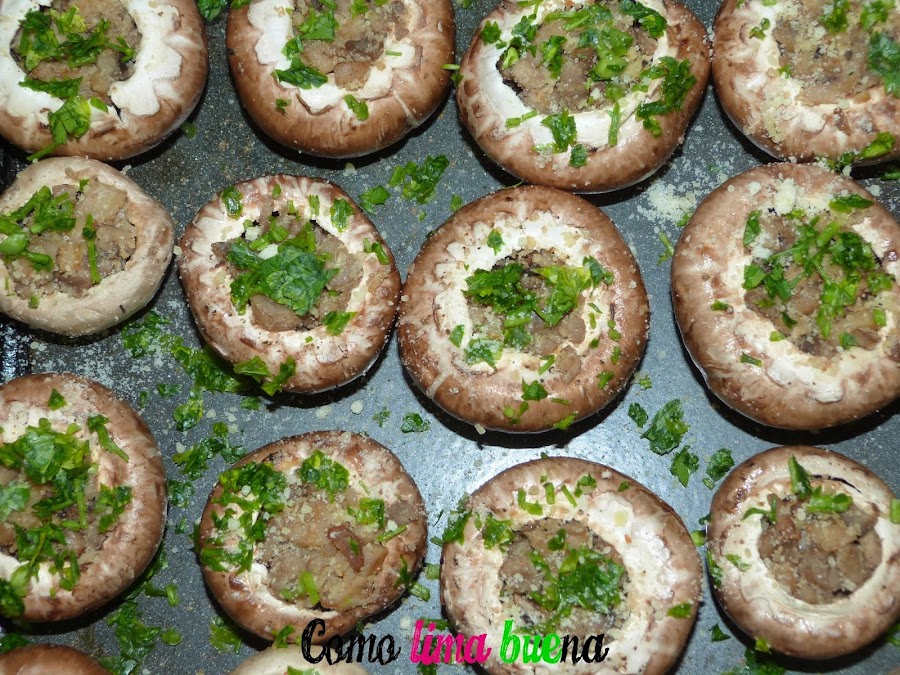 Rellenamos cada portobello con una cucharada bien colmada de esta preparación. Cubrimos con perejil picado y horneamos hasta que estén dorados y tentadores. Mmm...