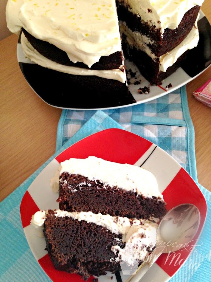 Como toda la blogosfera, adapté la receta de la de Nigella Lawson y ha sido un placer disfrutarla... preparándola y comiendola. Mi aportación personal ha sido añadir al frosting de queso el lemon curd casero que tanto me gusta.