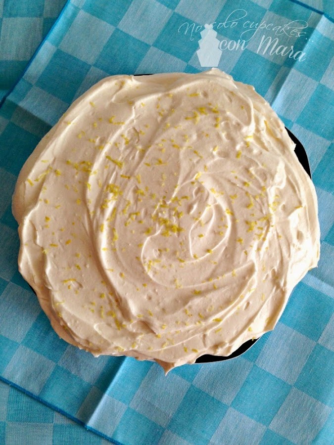 Mientras preparamos el frosting, mezclamos el queso y el azúcar, en la KA o con cualquier batidor eléctrico, hasta conseguir una crema suave, después le añadiremos la nata (crema de leche) y e lemon curd. Volvemos a batir hasta que se monta la nata (crema de leche), con cuidado que no se pase y se nos haga mantequilla. Así conseguiremos una crema ligeramente untuosa que pondremos sobre a tarta ya fría.