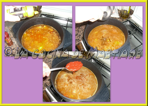 Añadir un toque de cúrcuma, las pastillas de caldo machacadas y el tomate frito estilo casero.