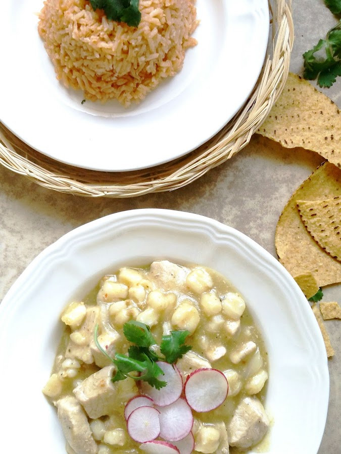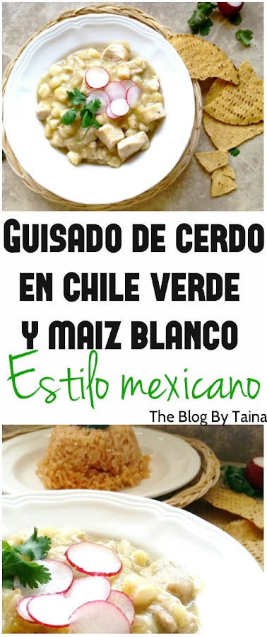 Soy una gran fanática del Pozole Mexicano , especialmente si tiene maíz extra. Así que este Guisado de cerdo en chile verde y maíz blanco estilo mexicano, con mucho maíz, es justamente uno de mis platillos favoritos. Es como comer un rico plato de pozole verde, y acompañado de un delicioso arroz rojo mexicano.