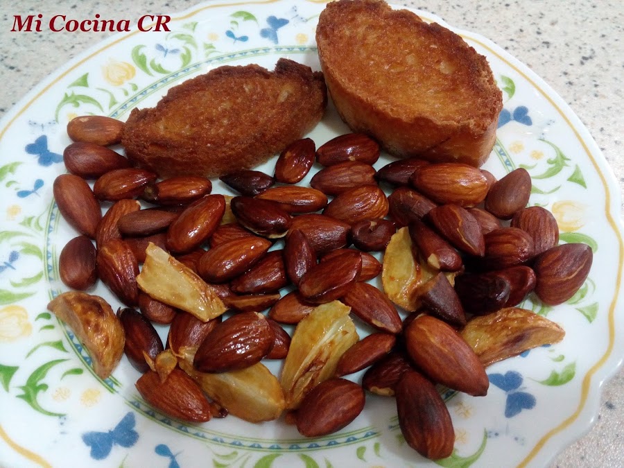 Me dejo llevar por los recuerdos, me encanta el olor inconfundible, majestuoso que impregna mi cocina el aroma de los ajos y las almendras fritas, rehogadas en ése aceite de oliva virgen extra malagueño que me traslada siempre a mi niñez.
