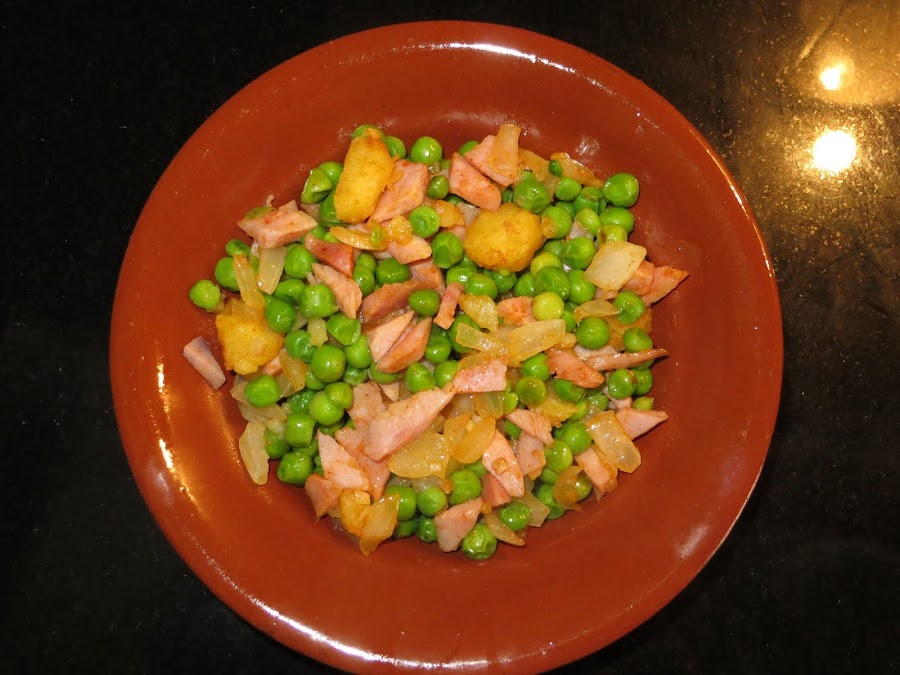 Cocemos los guisantes tal y como nos diga el fabricante o si utilizáis de lata os saltáis este paso. Ahora no hay guisantes frescos, pero si realizáis la receta en su época es mejor utilizar frescos.