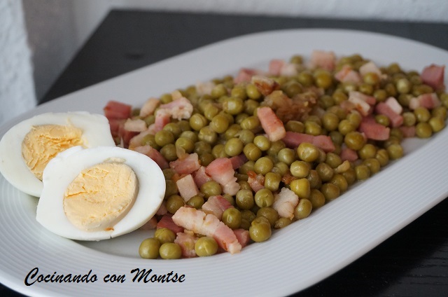 Hoy os traigo una receta rápida y sencilla, unos guisantes con bacon, seguro que os gusta!!! Podemos elaborar este plato con guisantes frescos si hay, la temporada es muy corta, pero podemos utilizar guisantes congelados o de lata. Quedan también muy buenos.