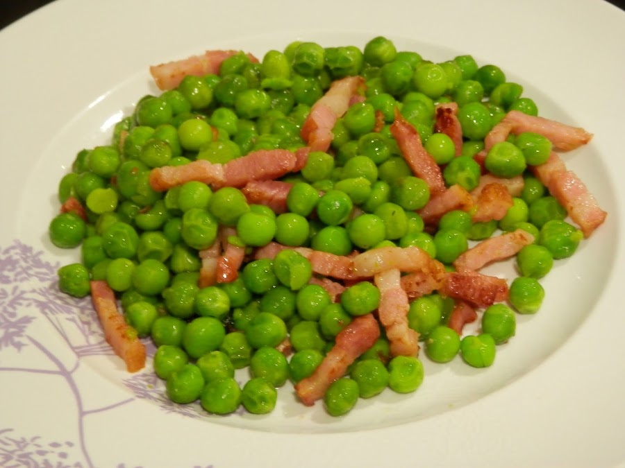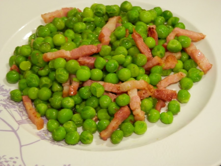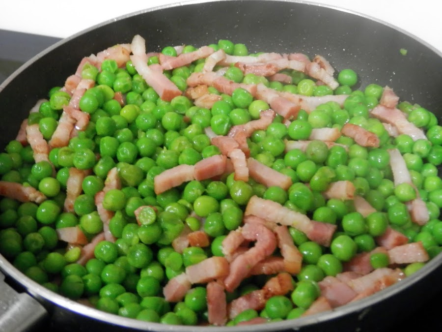 Cuando esté a medio, añade los guisantes y saltea todo junto durante unos cinco minutos.
