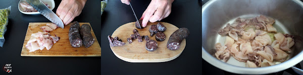 Cortar la butifarra negra en rodajas y después en pequeños dados.