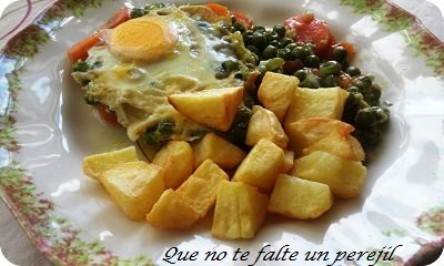 Los que me seguís hace tiempo, sabéis que soy de Huelva y allí o al menos en mi casa, le hemos llamado "chícharos " a los guisantes. Para mí , guisantes con huevos , ha sido siempre un plato esperado, me encantaban desde pequeña, desde siempre y de cualquier manera cocinados.