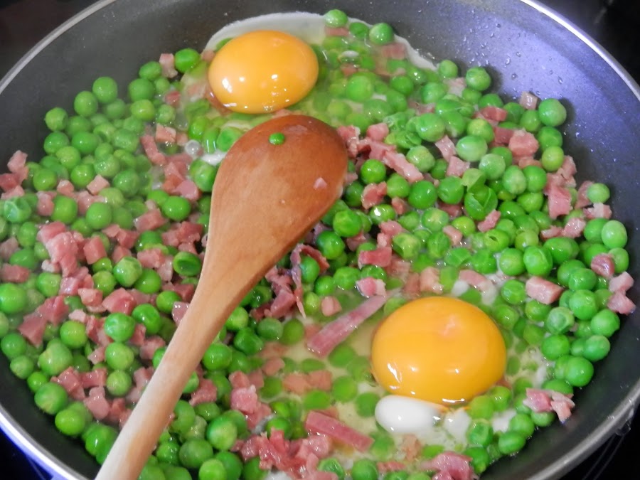 Hoy os traigo una receta rápida y sencilla a la par que muy resultona para las cenas tanto para mayores como para los más peques de la casa. Guisantes con jamón y huevo.