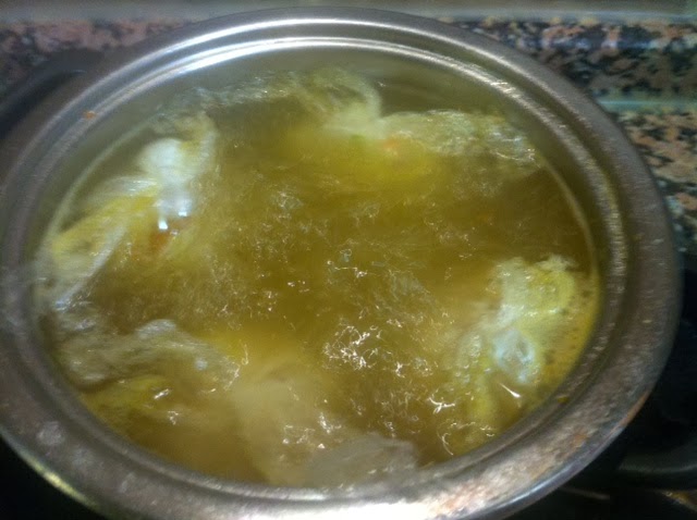 Echar estos paquetes al agua hirviendo (el que teníamos de los guisantes) y dejar hervir 3 minutos aproximadamente. Transcurrido este tiempo sacar de el agua y abrir inmediatamente el plástico para que no se pasen los huevos.