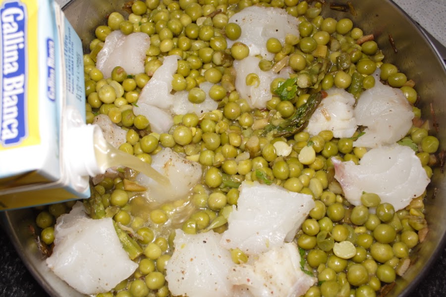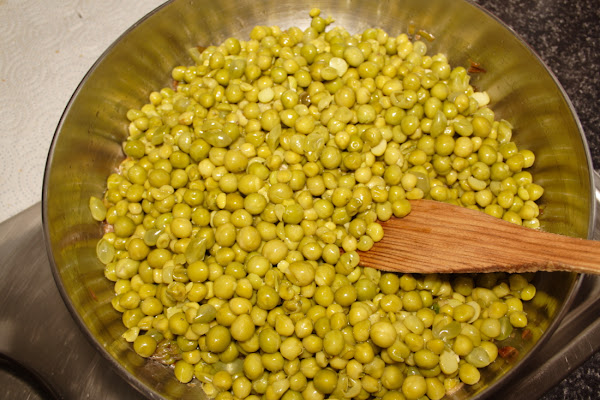 Consejo: Esta vez encontré guisantes frescos a buen precio, pero si no, los congelados de Mercadona resultan muy tiernos y ricos.