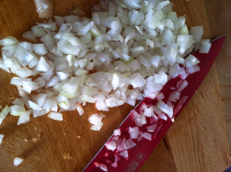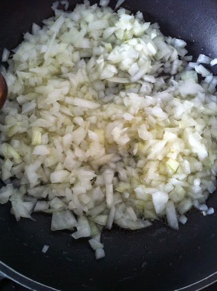 Después haremos lo mismo con la cebolla. La picaremos todo lo que podamos, y la pondremos a pochar junto con el ajo, a fuego medio para que se nos haga despacito.