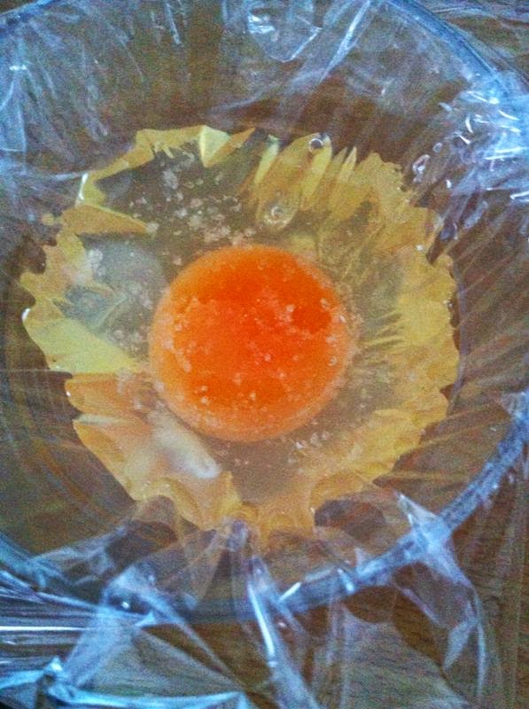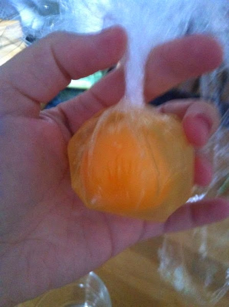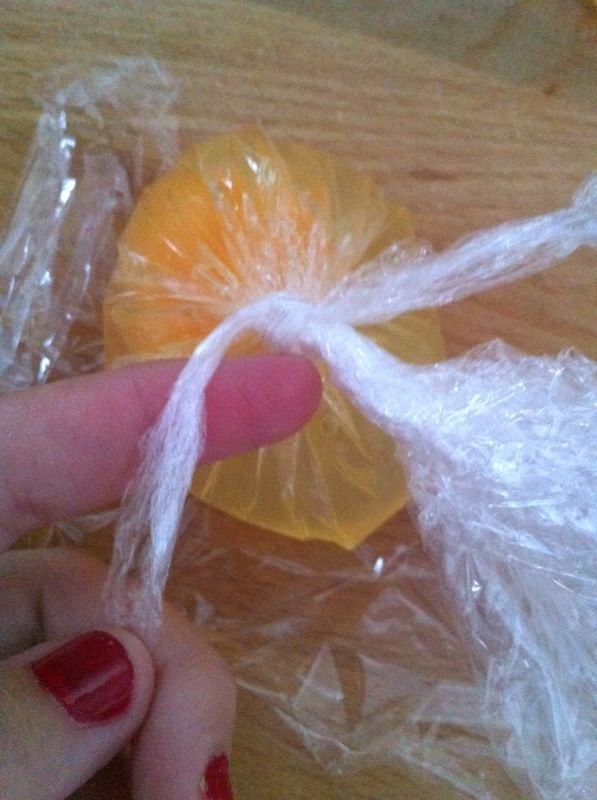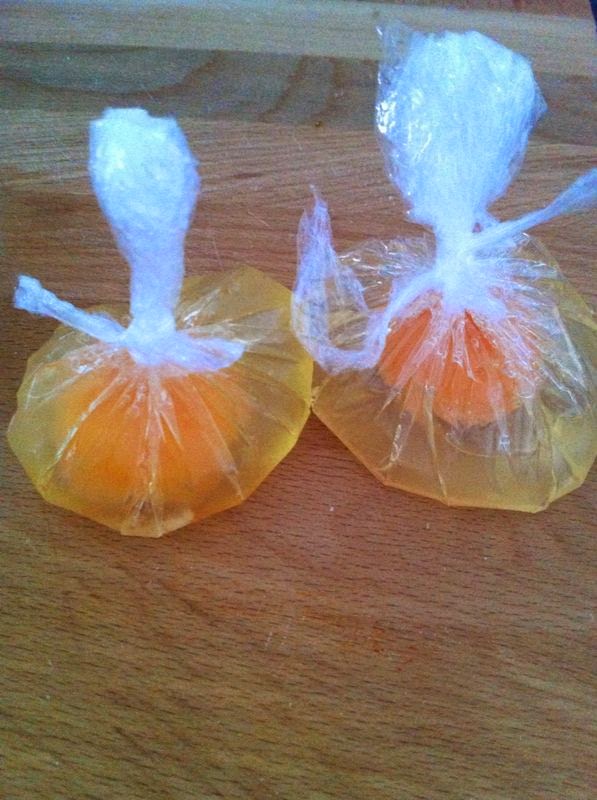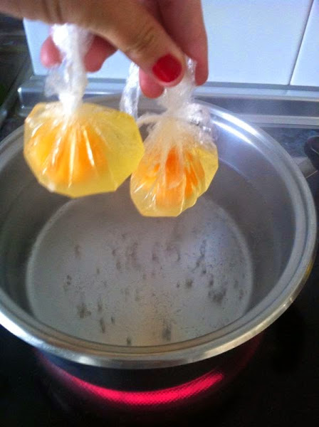 Cortaremos con la tijera los extremos, y retiraremos el film con mucho cuidado, ya que la yema estará líquida y si no tenemos cautela y paciencia la podemos romper.