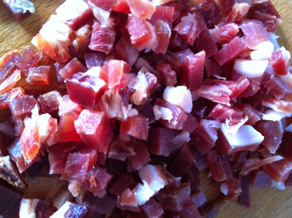 Para darles otro toque, yo añadí también un poco de bacon ahumado picadito y pimentón dulce.