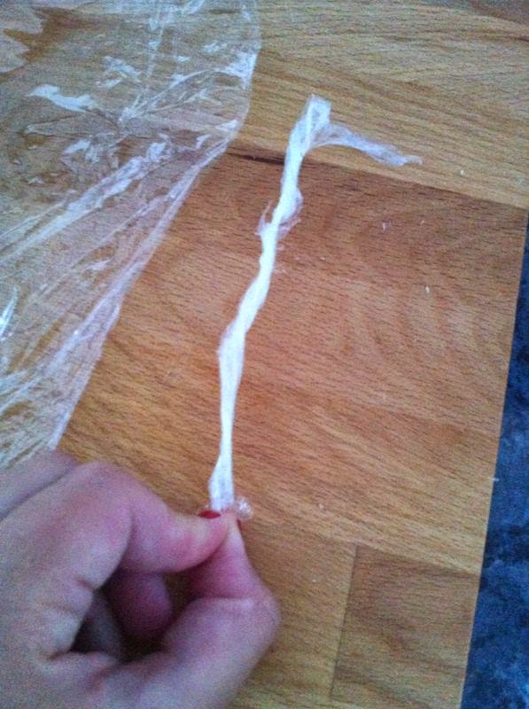 Con el mismo film, haremos un cordón no demasiado grueso para atar el saquito después.