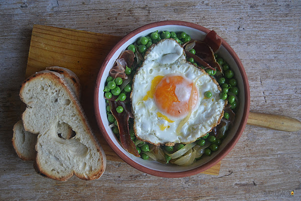 4º La cebolla ya la tendremos hecha añadir los guisantes y saltear un minuto y ya tenemos nuestro plato terminado, emplatar y disfrutar.