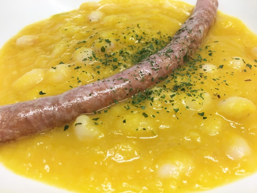 Hoy os traemos una receta de Karlos Arguiñano de este guiso de alubias con salsa de verduras y salchichas a la plancha que está riquísima, y viene genial para el frío que hace ya... ¡toma nota!
