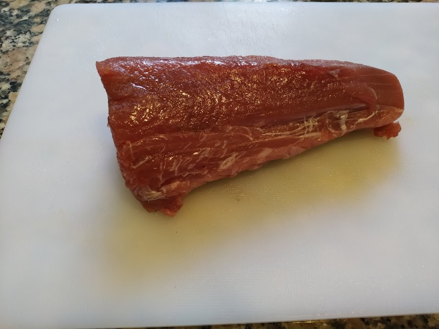 Troceamos el atún fresco a daditos de unos 2 centímetros, los marcamos ligeramente en una sartén con un poco de aceite de oliva y los añadimos a la olla.