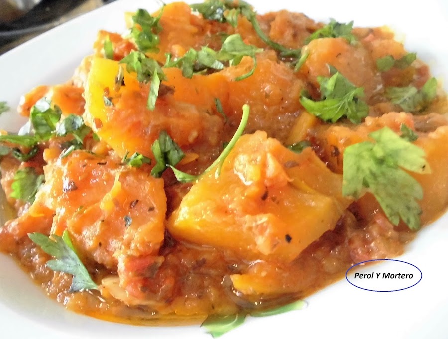 Pasado el tiempo removemos para ligar la salsa y añadimos los boniatos. Cubrimos con agua. Tapamos y dejamos cocinar quince minutos, a fuego lento, hasta que se hagan los boniatos, y se caramelicen.