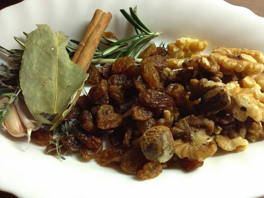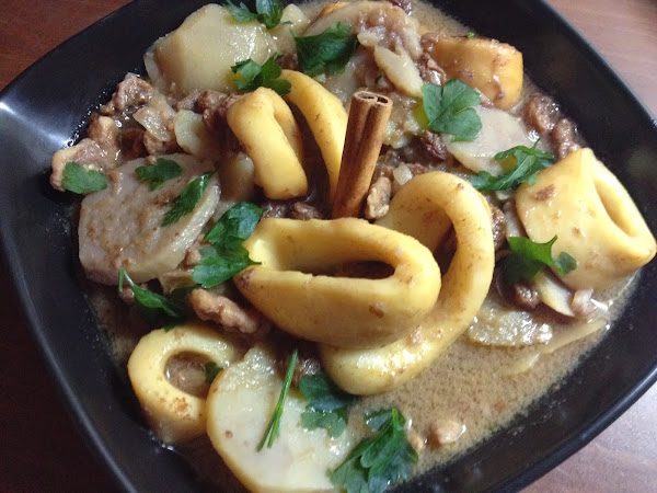 Guiso de calamares con nueces y pasas