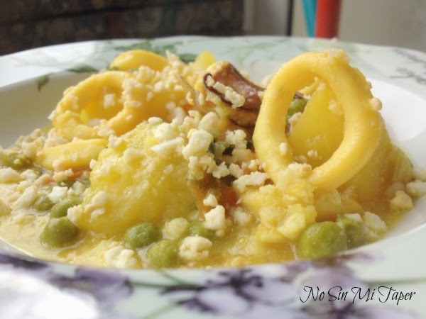 Los calamares guisados con patatas son un plato sencillo, aunque necesita su tiempo si no se va a usar la olla exprés. Esta es mi versión de un plato que supongo que es diferente en cada casa, pero al final muy similar en todos los hogares. No es una receta espectacular ni sorprendente, es de esas de toda la vida, con ingredientes de andar por casa... Pero no por ello deja de ser delicioso, uno de esos platos reconfortantes y buenísimos.
