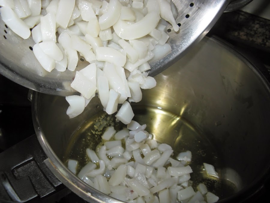 A continuación lo echamos sobre los calamares que tenemos en la cacerola