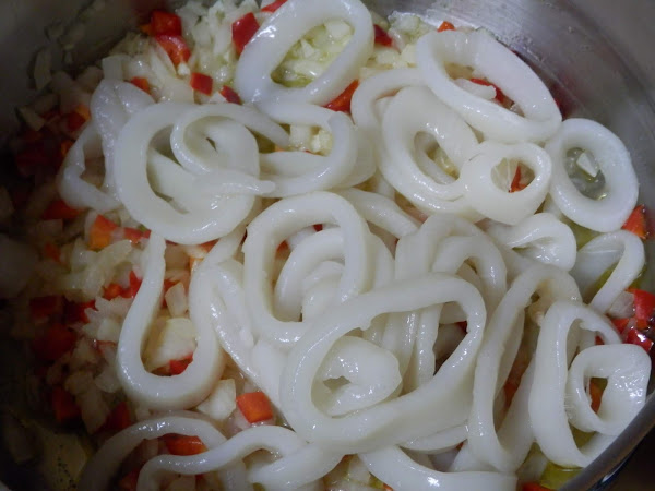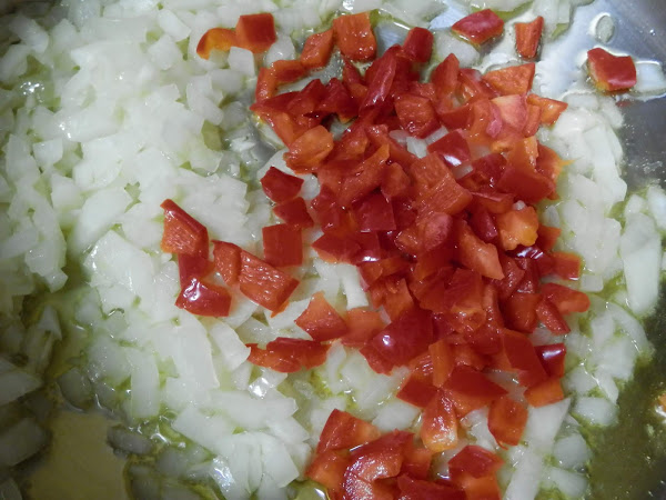 Sofríe bien y añade dos vasos de agua y deja que cueza bien.