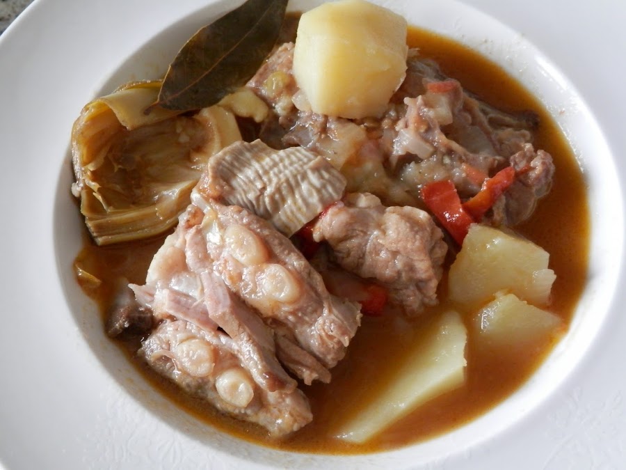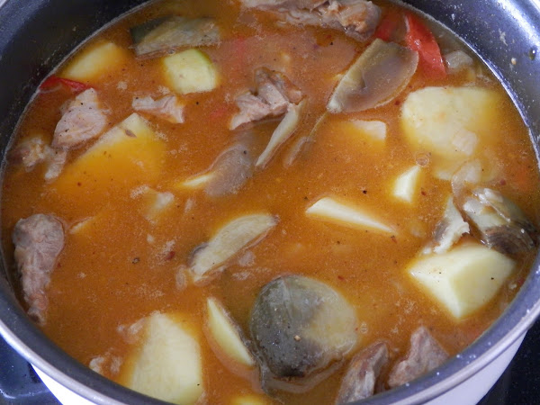 Dejamos cocer durante una hora y añadimos la patata cortada en cachelos.